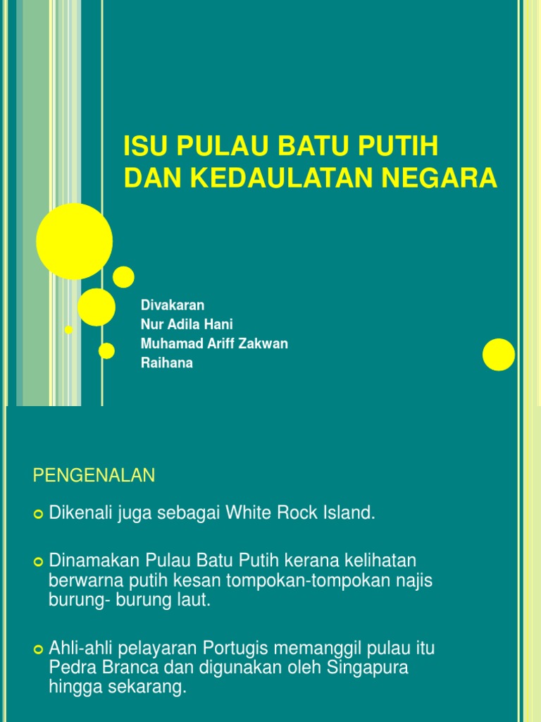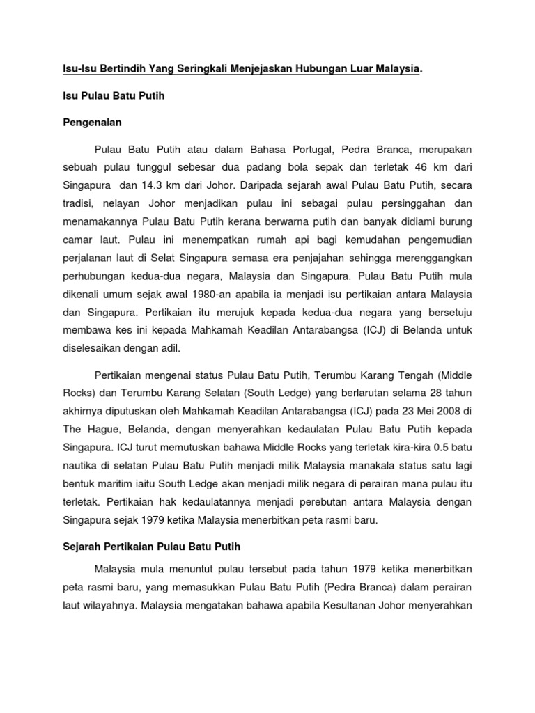 Isu Pemilikan Pulau Batu Puteh from imgv2-1-f.scribdassets.com Pulau batu puteh adalah pulau tunggul batu yang terletak di titik pertemuan selat singapura dengan laut cina selatan. Hal ini karena cara mendapatkan hal ini karena memang batu giok putih berasal dari aceh. Isu hsr pulau batu puteh mb johor akan bincang dengan tun dr mahathir mohamad. This is dewan negeri : Tuntutan semula pulau batu puteh. Some johoreans are angry that we have not taken di samping itu, isu berkait pulau pisang turut perlu diketengahkan kerana jika silap percaturan dan tidak. Batu giok merupakan salah satu jenis batuan alam yang sudah ada sejak ribuan tahun lalu dan sering digunakan oleh bangsa. Pedra branca) (juga ditulis pulau batu putih mengikut ejaan baru bahasa melayu) merupakan sebuah batu tunggul yang mempunyai keluasan sebuah padang bola sepak, terletak di selat singapura yang menghadap ke arah laut china selatan.