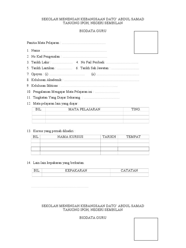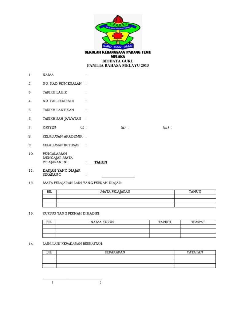 Boleh diubah sekiranya ada maklumat yang tidak lengkap, sila serahkan lampiran a4 kepada guru berkenaan. Borang maklumat guru by athirah budiman 13409 views. Lulus (40 % dan ke atas). Borang biodata guru kssr by mohd yaccob 2567 views. Author panitia bahasa melayu sksdposted on january 8, 2018january 8, 2018categories maklumantags ajk, maklumat guru.