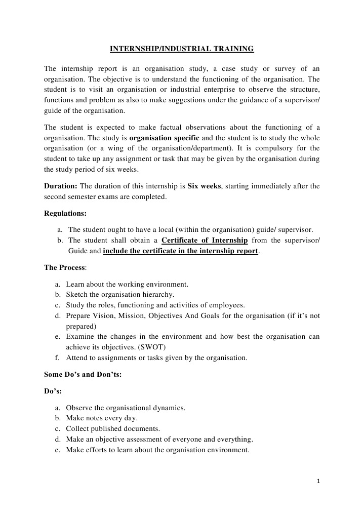The objectives of industrial practice are aimed at consolidating a long theoretical course of training specialists. I) be evidence that the student has been. The purpose of industrial training report is made to involve the students had follow and undergo the industrial training. It is a document with the activities that have been learned throughout the industrial training. An industrial training report should be prepared for each period of approved employment. · can prove that a student has to undergo industrial training. 2 (463 words) practical training report pages: To keep the factory plants, equipments, machine tools in an optimum working condition. · to tell all what they have learned during their industrial training (work experience). V explore options in career plans and goals. Generally, in writing up the introduction, a few sentences can be included at the beginning of every chapter that describe accurately the objectives of the particular chapter. Industrial training report is an important document to each of the students. * to provide an avenue for students in institutions of higher learning to acquire industrial skills and experience in their course of study * to.